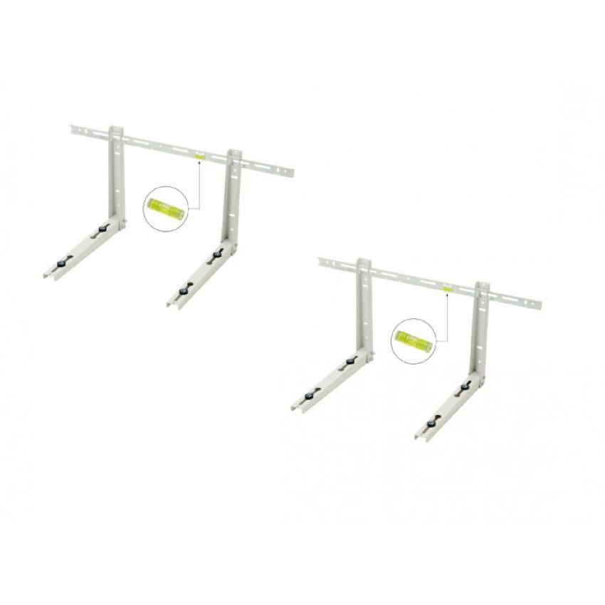 Staffa NICCONS ATENA premontata per  unità esterna condizionatori. Completa di livella e viteria di fissaggio. Verniciata con polveri epossidiche RAL 9002. Piedino posteriore regolabile in nylon e fibra NBR. Garantisce carichi elevati (KG 70+70) grazie alla robusta lamiera nervata e ripiegata. Ampie asole per una comoda installazione. Dimensioni in mm P420 x H400 x L800