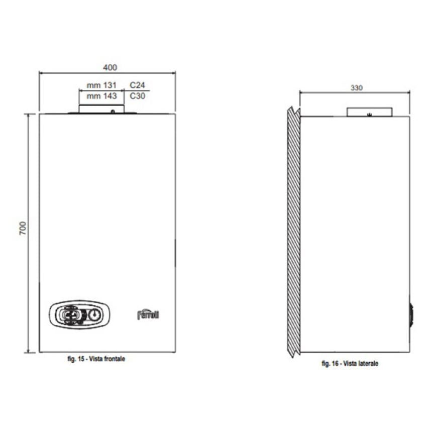 Caldaia convenzionale DIVATECH D LN C 24 camera aperta, potenza in riscaldamento Kw 24, acqua sanitari Kw 24. Funzionamento metano, trasformabile anche a GPL. Ideale per riscaldare ambienti fino a 150 mq Dimensioni: Altezza: mm 700 - Larghezza: mm 400 - Profondità: mm 330