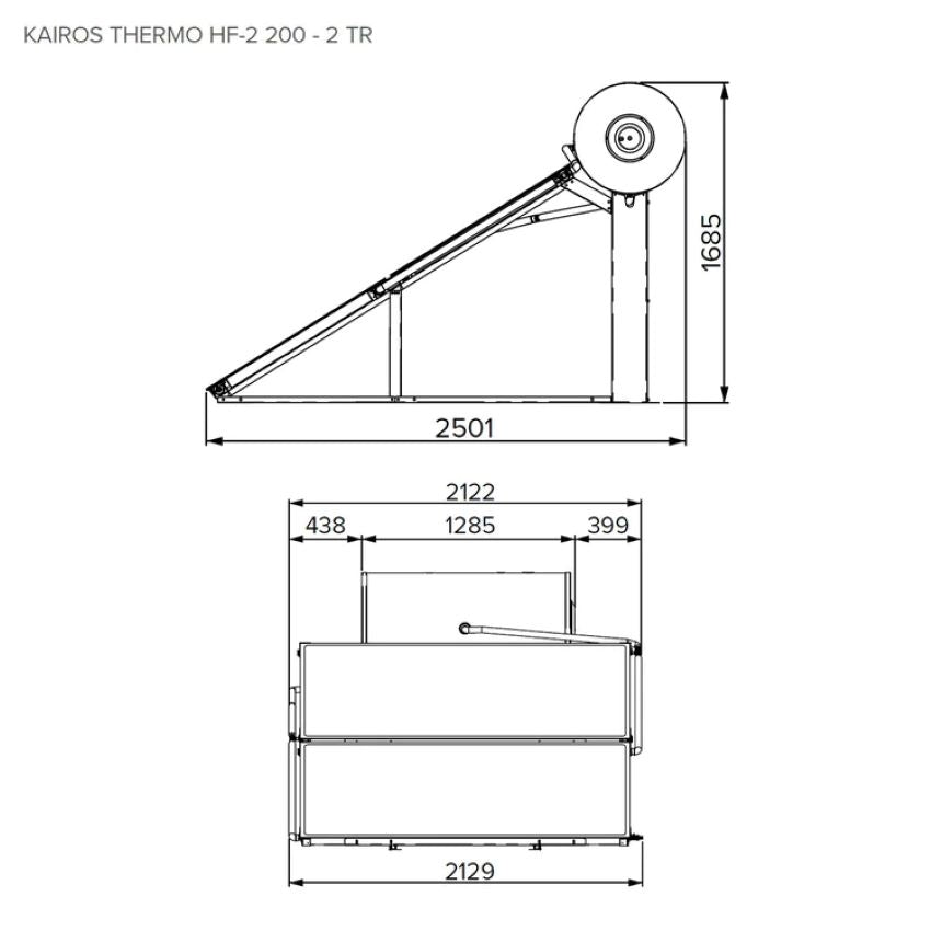 Ariston KAIROS THERMO HF-2 200-2 TR Sistema solare termico a circolazione naturale con accumulo da 200LT e 2 collettori orizzontali, per installazione a terra, tetto piano.